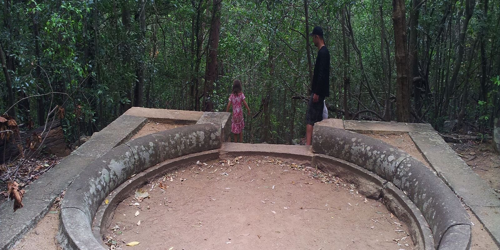 Ritigala monastery where Pansakulikas monks dwelled has no stupas, no image houses, or temples. The long meditational pathway which branches out to the buildings while climbing up the mountain brings about tranquility in the jungle setting. The architecture herein is in line with all other forest monasteries of Pansakulikas: certain mysterious features unique in Sri Lankan monastic architecture; long paved paths often with roundabouts in them; large stone-lined and stepped reservoirs; and unique double platforms.